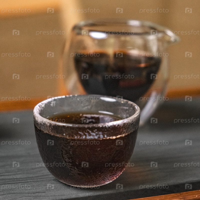 Сложные и элегантные блюда с темным напитком, установленные на красивом подносе для подачи