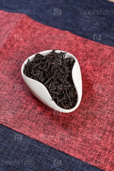 Эти изысканные, сушеные листья черного чая красиво представлены в стильной современной керамической миске