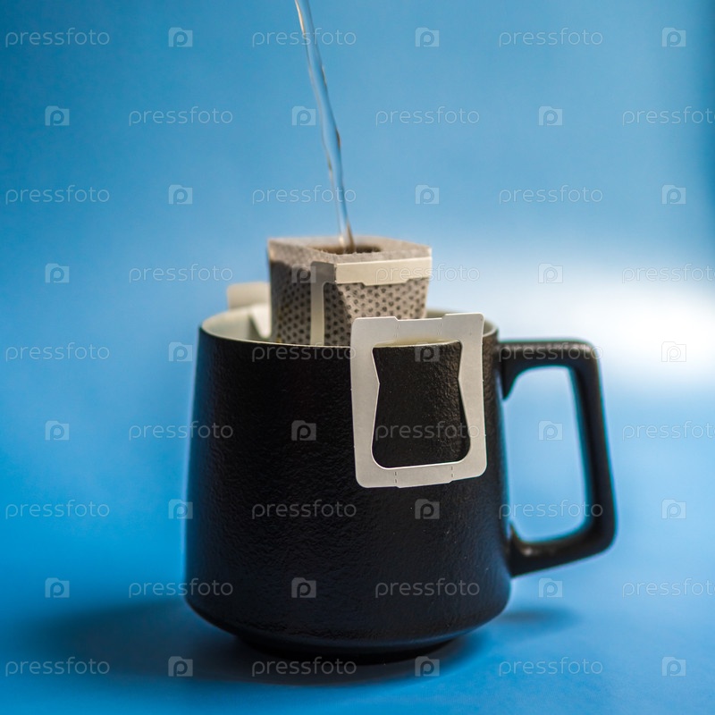 Заваривание тонкой чашки чая в стильном черном муге, оснащенном удобным фильтром