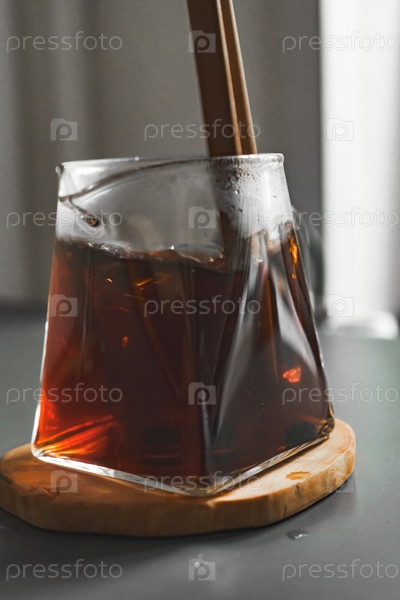 Наслаждайтесь свежим холодным кофе, изящно представленным в гладком и стильном стакане