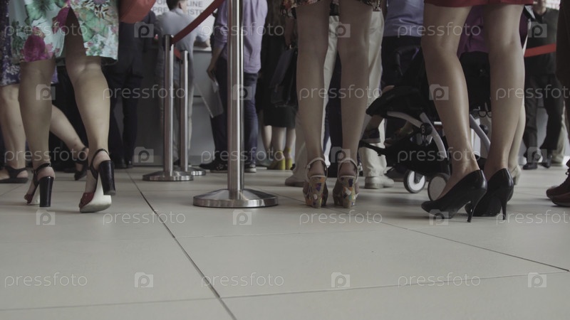 В аэропорту ждет много людей. ноги людей в очереди в аэропорту