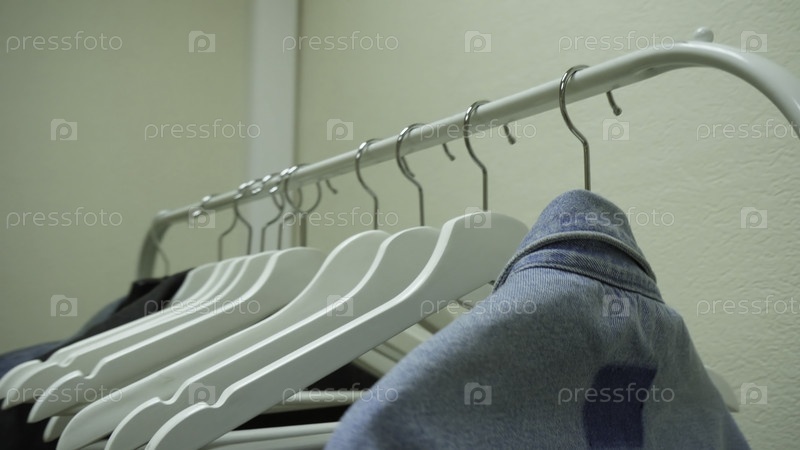 Одежда висит на полке в магазине дизайнерской одежды