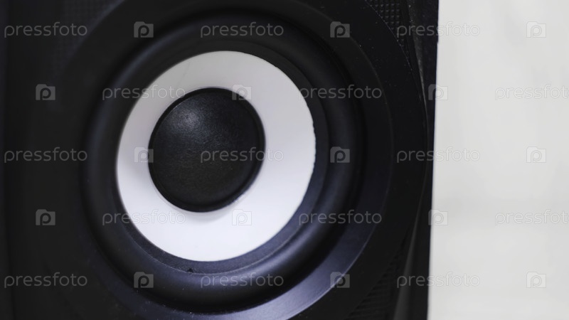 Вибрирующий басовый динамик. Концепция. Черный спикер вибрирует, когда бас громкий. Громкое и четкое звучание от PC-диктора
