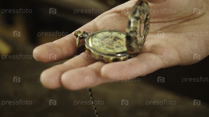 Мужчина держит старые часы. резервные записи. Близкий план красивых наручных часов с узорами на крышке. Далее мужчина смотрит на старые ручные часы