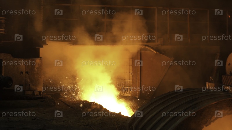 Жидкий металл из высокой печи.Железо с жидкими ведрами в сталелитейных заводах
