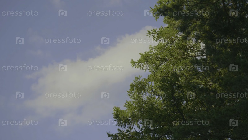 Зеленые листья березы сияют на солнце на голубом фоне неба. Красивые вершины осенних деревьев и синего неба