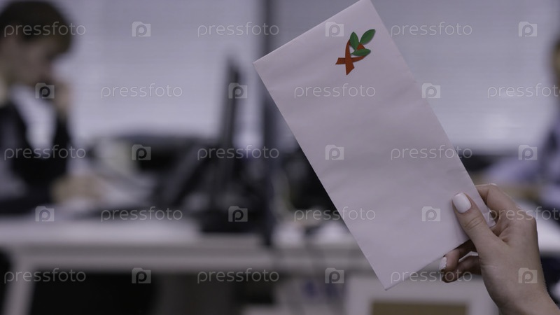 Рука женщины держит закрытый конверт, а женщина - белый