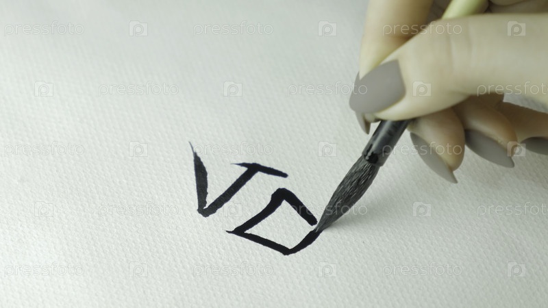 Рука женщины, держащей письменную кисть из каллиграфии китайских символов, закрывается