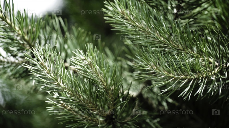 Зеленые колючие ветви мехового дерева или сосны. Прекрасные ветки пихты. Закройте его. Яркие вечнозелёные свежие иглы зеленого сосна. Новые иглы спермы, хвойные