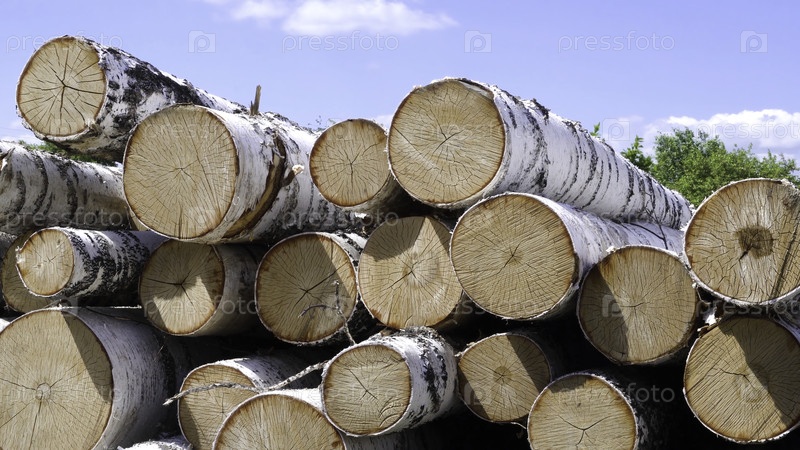 Много березовой древесины. резервные кадры. Падающие березы Вырезать березу в кучу в лесу. Работать в лесу. падающие деревья