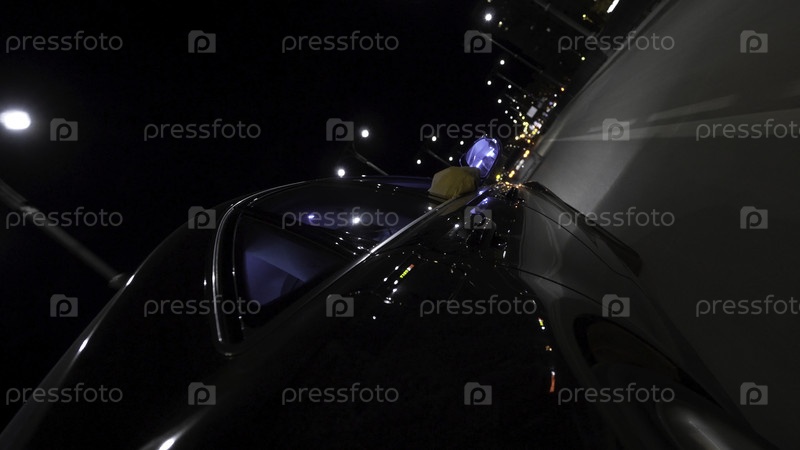 Ночная езда ночью, вид с руля, концепция ночной жизни. кадры. близко к движению черной машины по улице города в темное время суток