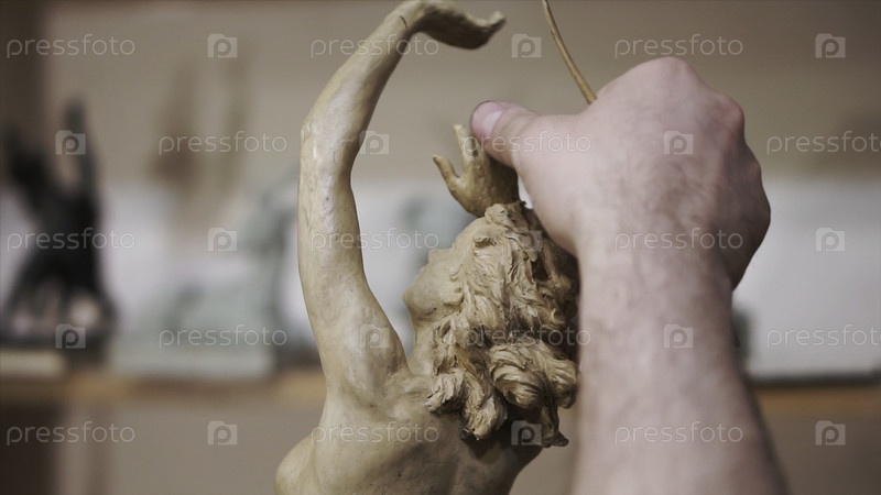 Закрытый художник-скульптор создает скульптуру бюста.Создание скульптуры.Старейший скульптор создает профиль скульптуры