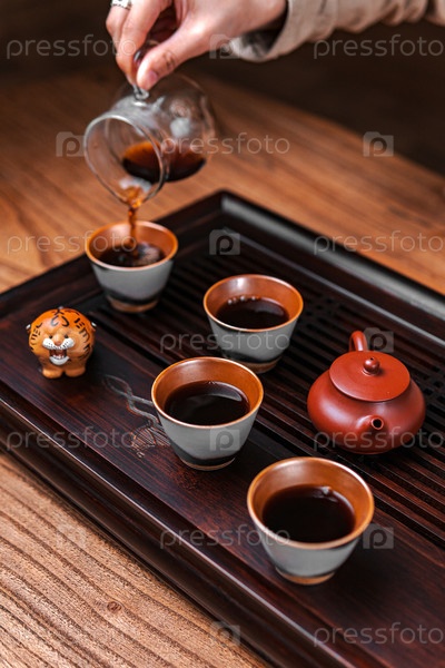 Почувствуйте обогащающую и культурную традиционную чайную церемонию с чайником и элегантными чашками