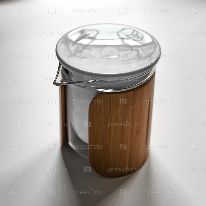 Эта стильная современная стеклянная банка имеет красивую деревянную основу и крышку, идеально подходит для хранения или украшения
