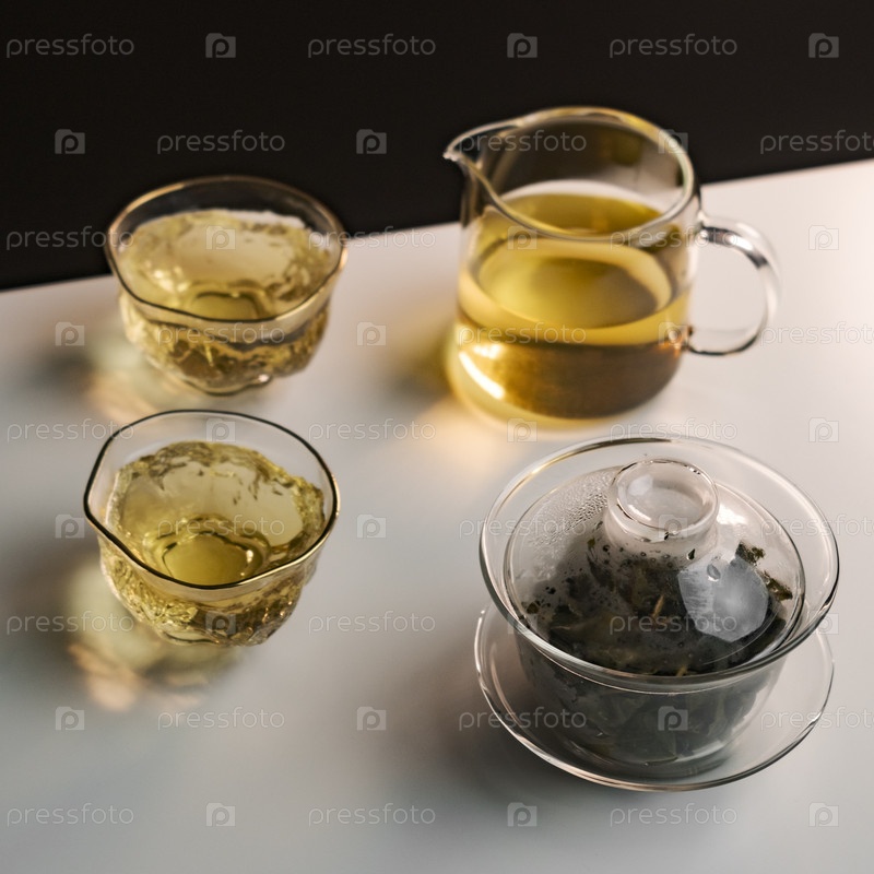 Элегантное чайное растение с красивой стеклянной посудой и высококачественным зеленым чаем