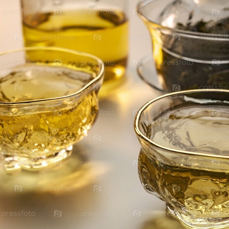 Освежающий зеленый чай подается в элегантных стеклянных чашках, чтобы улучшить опыт питья