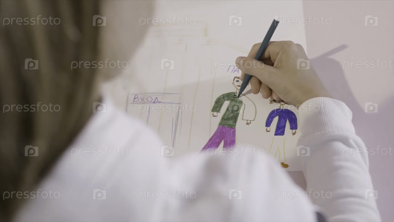 Маленький ребенок рисует карандаш на листе бумаги. давай. маленькая девочка рисует на листе бумаги. подарок для мамы