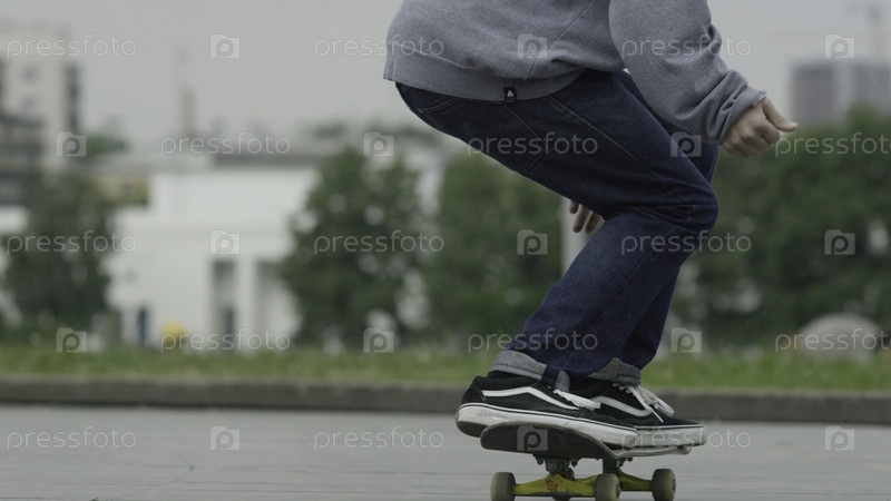Покрывайте ноги скейтбордеров во время езды на бетоне в скейт-парке