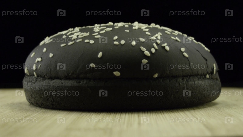 Бун для черных гамбургеров. резервные кадры. чёрный сусамовый бутерброд для бургера