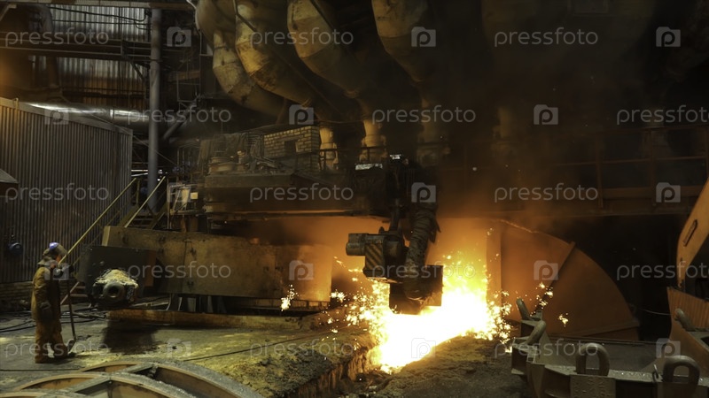 Оборудование и машины на металлургическом заводе. Тяжелая промышленность. Открытие стационарных машин