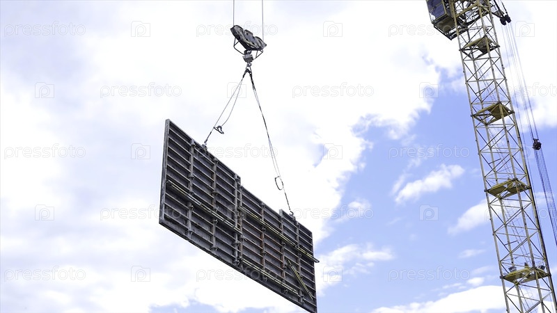 Строительство современного здания и небоскреба. строительный работник на стройке