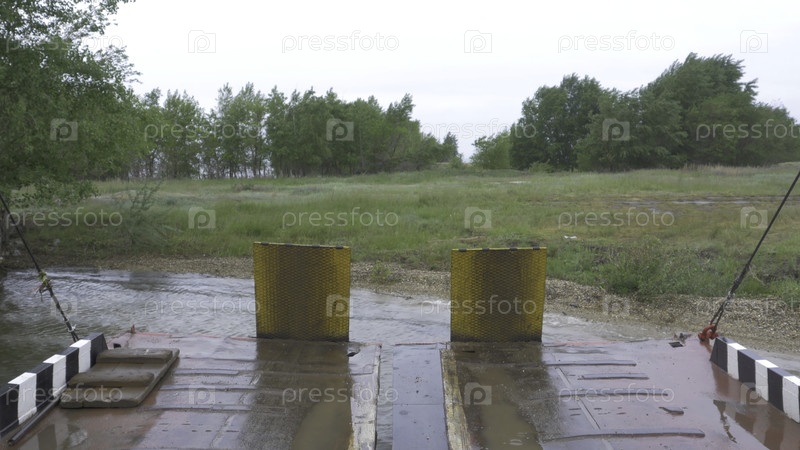 Паромный пляж и река. паром приближается с открытой рампой к яхте Эль-Ромпидо. эта лодка предназначена только для пассажиров