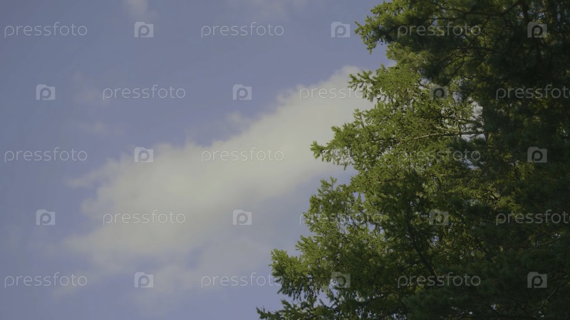 Зеленые листья березы сияют на солнце на голубом фоне неба. Красивые вершины осенних деревьев и синего неба