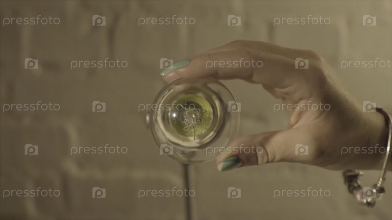 Рука женщины откручивает лампочку.Женщина развернула лампочку в свет, который не светит