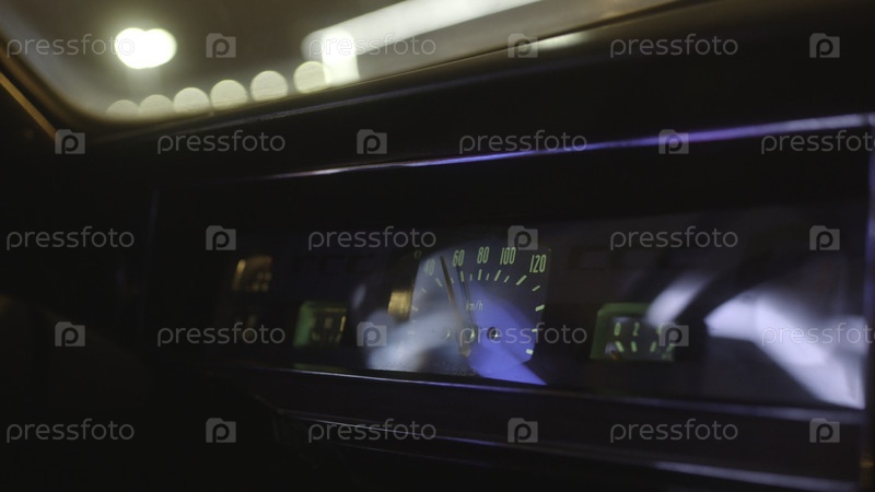 Закрытие приборной панели внутри движущегося старого автомобиля в России. резервные записи. ретро-автомобили и их интерьеры