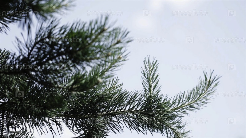 Зеленые колючие ветви мехового дерева или сосны. Прекрасные ветки пихты. Закройте его. Яркие вечнозелёные свежие иглы зеленого сосна. Новые иглы спермы, хвойные