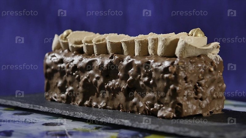 Крем и ореховый торт. Шоколадный пирог с орехами и шоколадными чипсами. Шоколадные карамельные кексы с орехами и сиропом из масла HD
