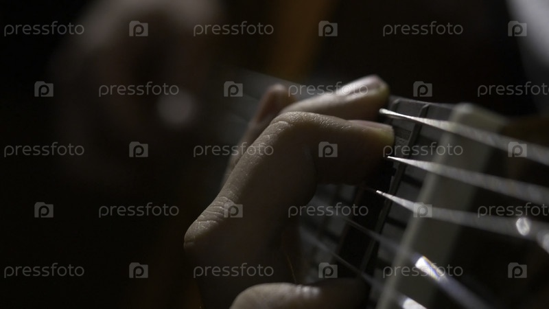 Рука гитариста играет на акустической гитаре.Закройте картинку пальцами на ладони