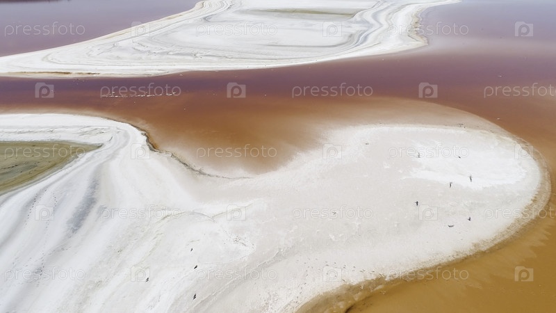 Впечатляющий природный пейзаж розового необычного озера с белыми солевыми берегами
