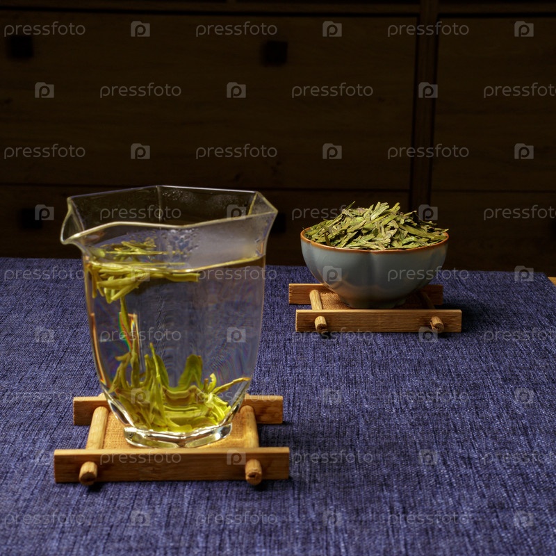 Наслаждайтесь свежим настойкой зеленого чая, подаваемого в прозрачном стакане вместе с деликатными чайными листьями