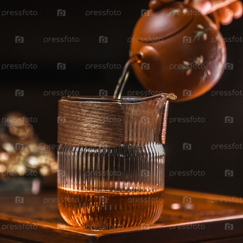 Спокойная сцена, где чай наливают из горшка в стакан, подчеркивая традицию и мастерство