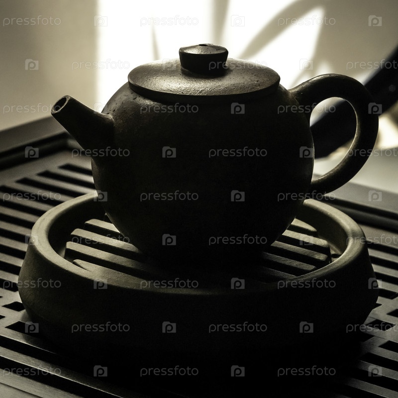 Элегантный силуэт чайника грациозно показан на стильной и шикарной чаевой подносе