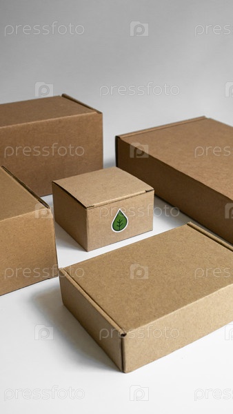 Разнообразный ассортимент экологически чистых коричневых упаковочных коробок, которые идеально подходят для доставки и хранения