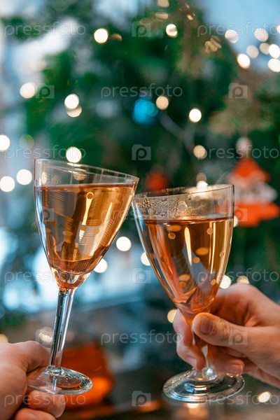 Веселитесь, вместе празднуя прозвучание бокалов среди красивых праздничных огней вокруг нас