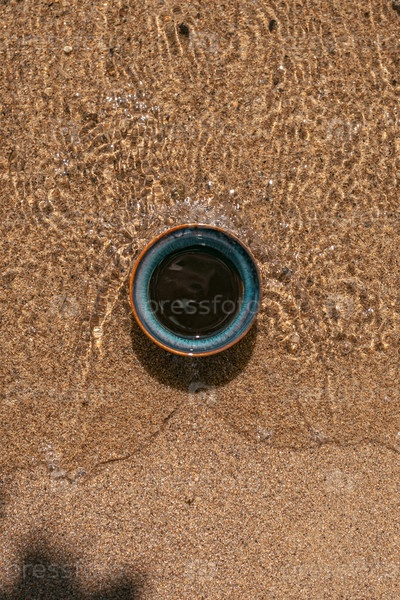 Спокойный пляж с красивой чашей, которая грациозно окружена блестящей водой и мягким песком