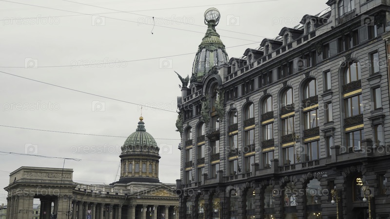 Архитектура исторических зданий в центре города с Катедрами.Продолжайте.Прекрасная архитектура старого города со статуями и купольным собором на фоне облачного неба