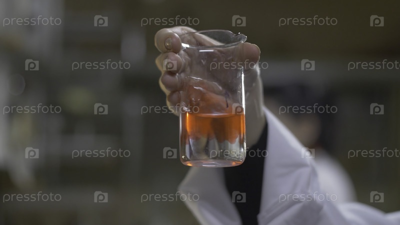 Химик-рукописец смешивает красное вещество в пробирках.Врач наливает красные химикаты во флакон