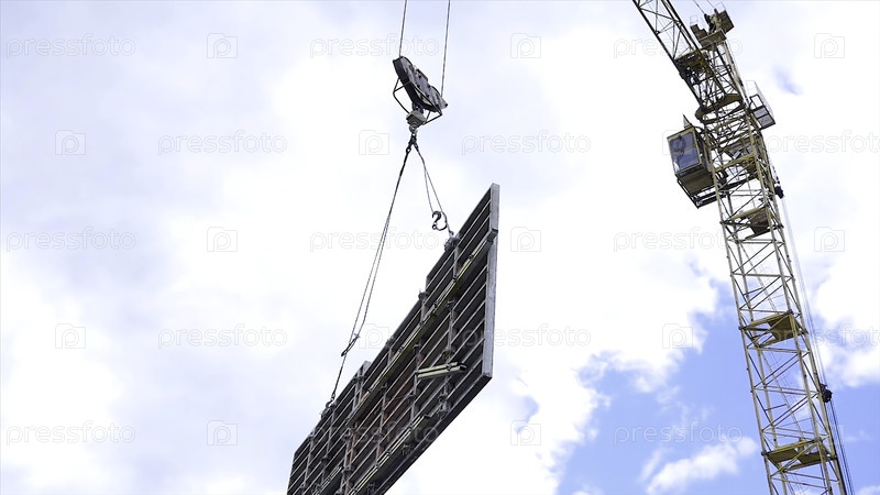 Строительство современного здания и небоскреба. строительный работник на стройке