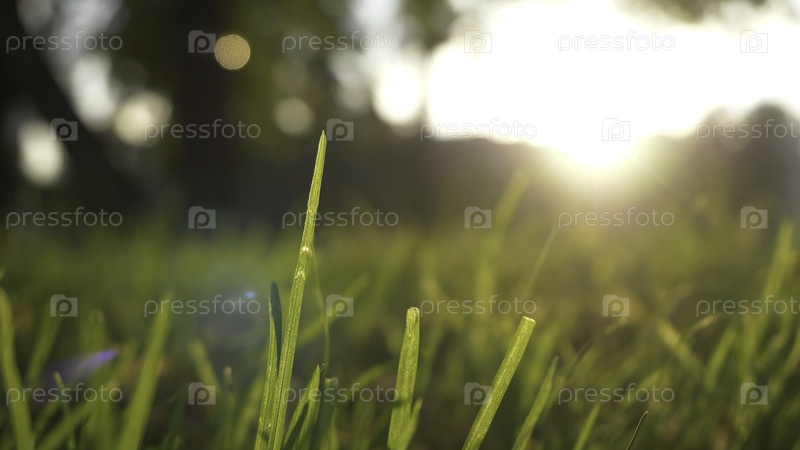 Летнее движение луга травы размывает приятный ветер с ярким солнечным светом, солнечный весенний фон