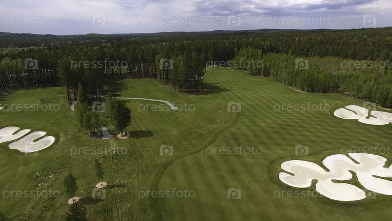 Вид сверху - зеленое поле для гольфа на открытом поле из зелёной травы