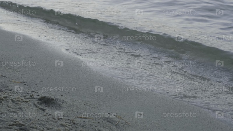 Мягкая волна моря на песчаном пляже.Подробная информация о пенообразных волнах, вымывающих берег на пляже