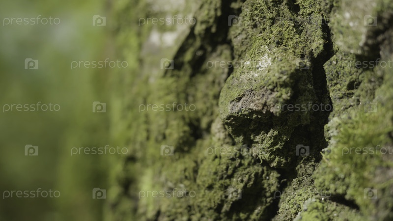 Старые деревья с лишайниками и мхом в лесу.Лесные деревья - это природная зеленая древесина.Мох на дереве в лесу. Закрытие