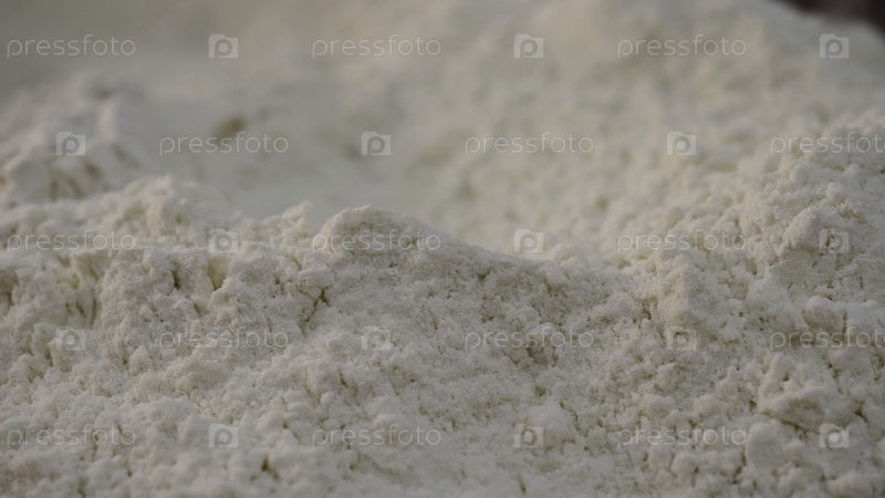 Закрытие хрупкой белой муки. резервная запись. Белая чистая мука фильтруется перед использованием в приготовлении хлеба. белый плотный, но хрупкий порошок или мука