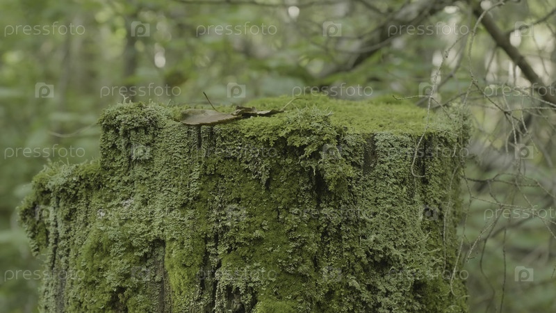 Мох на конопе в лесу.Старая древесина с мохом в лесу.Купол зеленого моха пихта сосна хвойный лесной парк дерево корневая кора