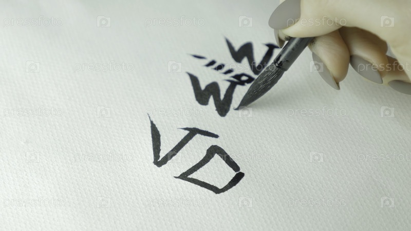 Рука женщины, держащей письменную каллиграфию китайских символов, закрывается