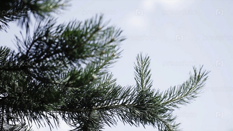 Зеленые колючие ветви мехового дерева или сосны. Прекрасные ветки пихты. Закройте его. Яркие вечнозелёные свежие иглы зеленого сосна. Новые иглы спермы, хвойные